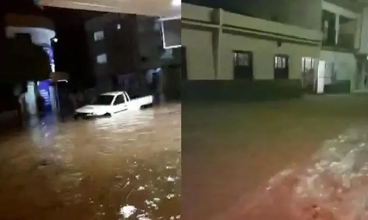 (01/12). Parte da cidade ficou alagada e a água invadiu várias residências.