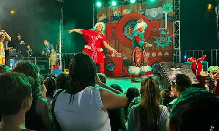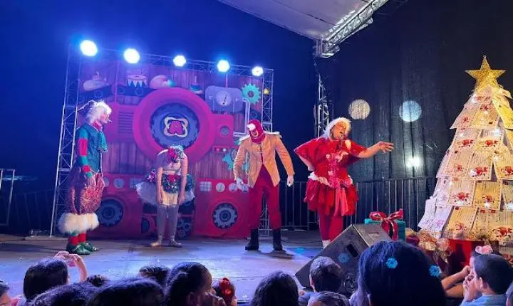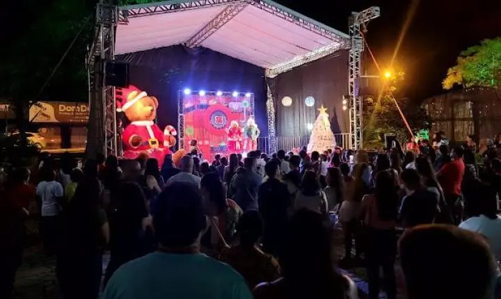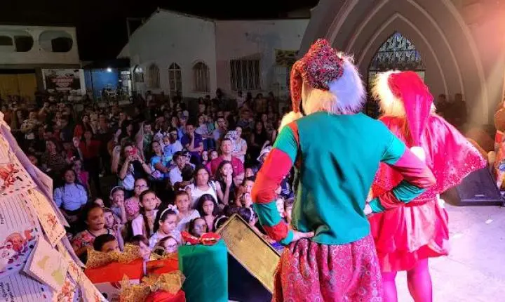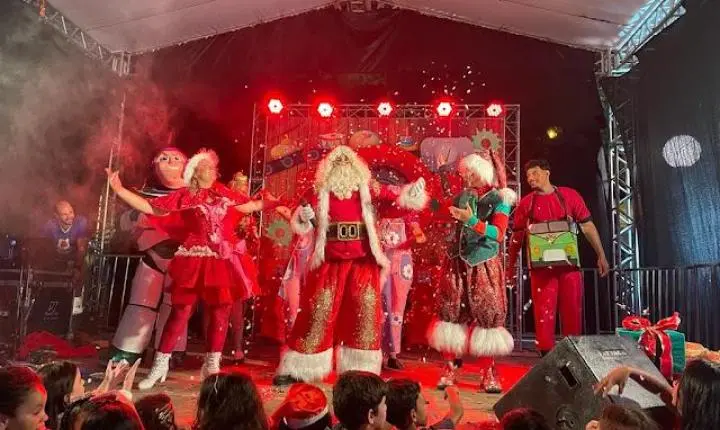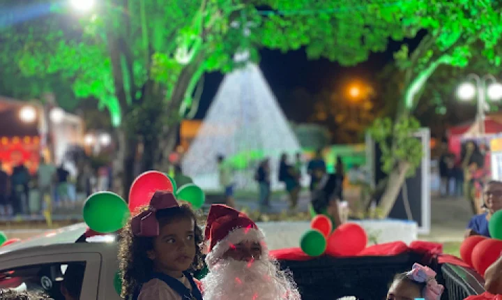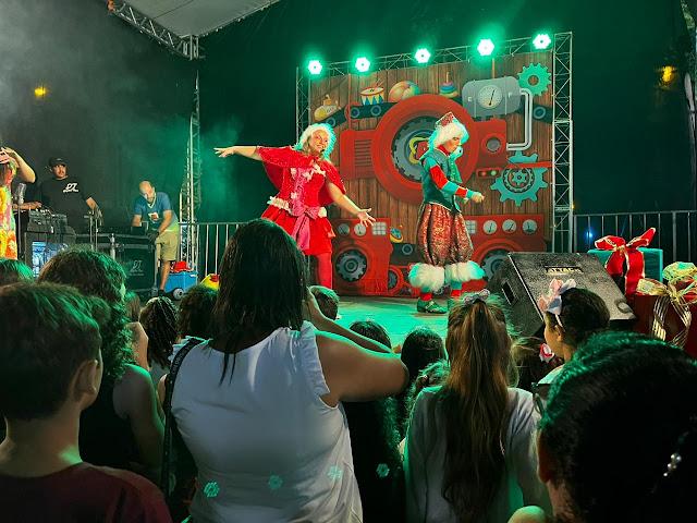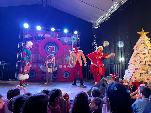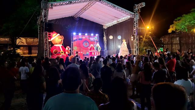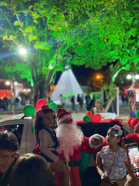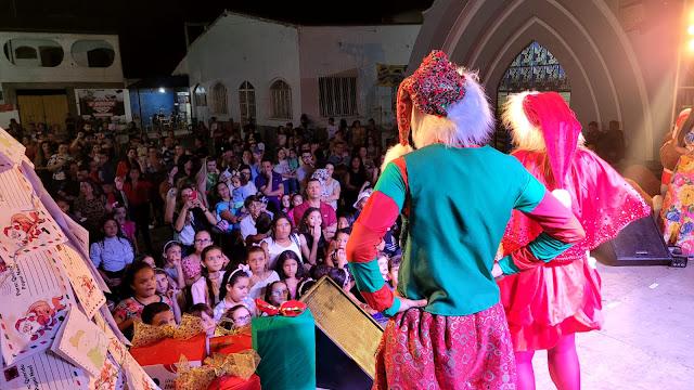 Ás 19:30h Papai Noel chegava ao local deixando toda criançada presente radiantes de alegria, também na noite de ontem em um grande palco montado em frente a igreja matriz a cantata natalina ficou por conta das crianças do projeto (INCLUSÃO CULTURAL) regidos pela professora Renata Shuartz, logo em seguida foi a vez da apresentação da peça teatral (A FANTÁSTICA FÁBRICA DE NOEL), a "CASA DO PAPAI NOEL" também foi inaugurada junto com a iluminação da enorme árvore de natal montada bem no centro da praça.