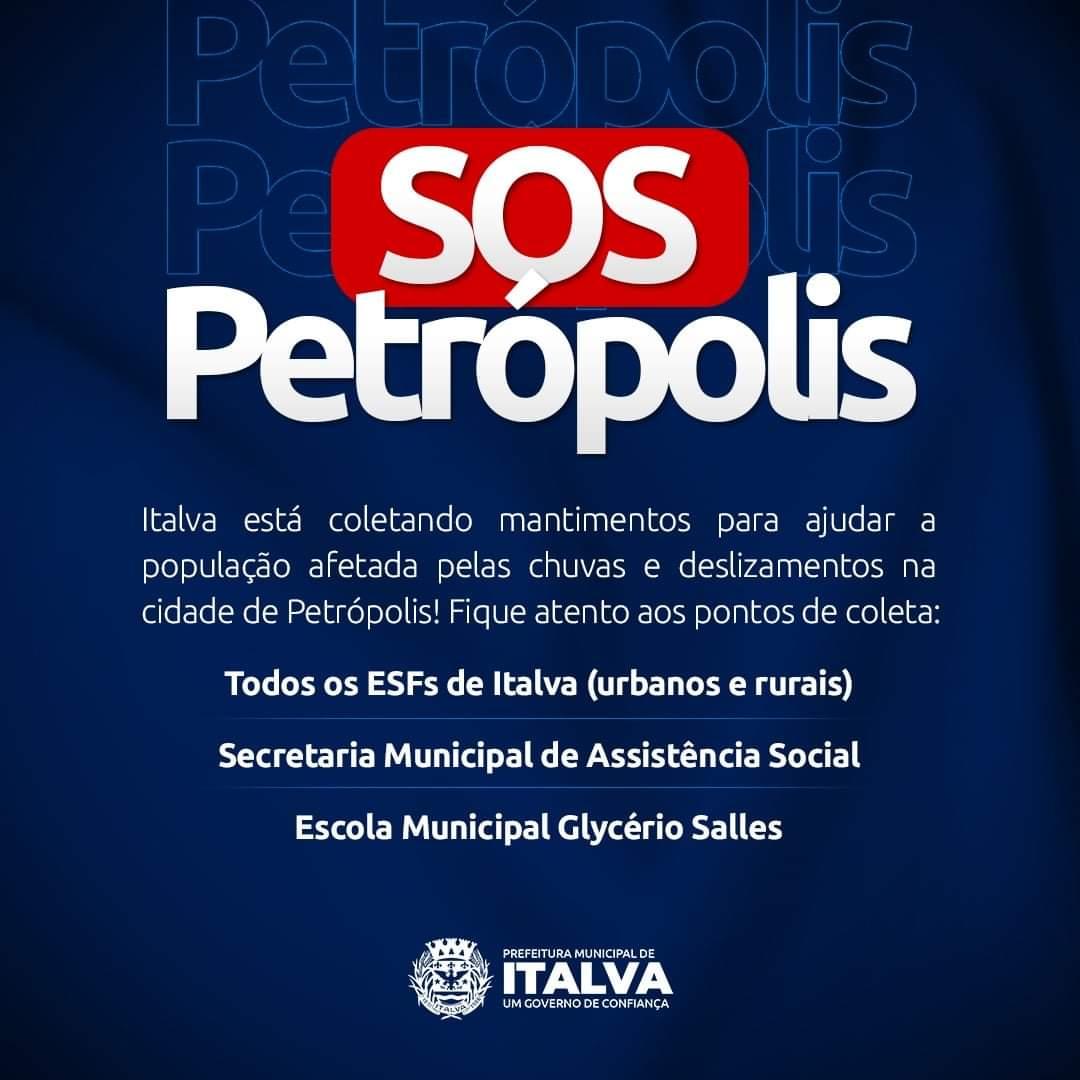 Prefeitura de Italva abriu nesta quinta-feira (17/02), três pontos de coleta para arrecadar doações que serão destinadas às vítimas do temporal que atingiu a cidade de Petrópolis. As doações podem ser: Materiais de limpeza, higiene pessoal, água mineral, alimentos não-perecíveis, colchonetes, roupas de cama, mantas, cobertores, roupas de todos os tamanhos (infantil e adulto), fraldas, lenços umedecidos, pomadas e outros donativos.
